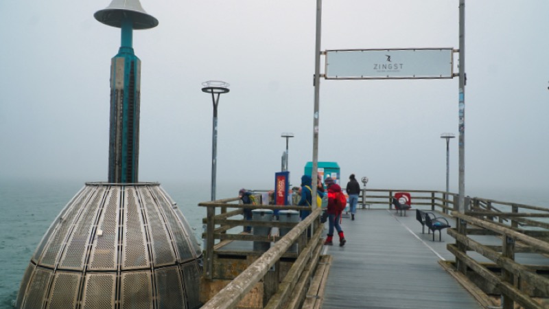Ostseeheilbad Zingst begrüßt schon seit 1881 hier die ersten Gäste, dieser Ort versteht also was von Tourismus. In Zingst findest du viele Pensionen, Hotels, Restaurants und natürlich auch eine Seebrücke. Diese war heute unser erstes Ziel. An der Seebrücke angekommen, sind wir erst einmal zum Strand und haben gar nicht weit weg eine überdimensionale Brille (Sea Pink II) entdeckt. Sie gehört zum Foto-Kunst-Pfad und symbolisiert die Welt durch eine rosarote Brille zu betrachten. Anschließend sind wir noch ein Stück am Strand entlang und wieder zurück zur Seebrücke mit seiner Taucherglocke.
