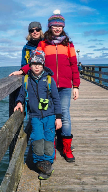 In Grahl-Müritz haben wir unsere Bäderrundfahrt fortgesetzt und sind natürlich auch hier zur Seebrücke gelaufen. Danach sind wir noch etwas am Strand lang gewandert und haben Steine gesucht, als mich eine Welle von hinten erwischte und meine Schuhe kurz im Wasser waren. Wir mussten also kurz in die Unterkunft zurück und ich habe die Schuhe getauscht. Danach sind wir weiter Richtung Ahrenshoop der künstlerischen Stadt am Darß gefahren. Auch hier waren wir wieder am Strand und sind zurück durch das schöne Städtchen gelaufen. Zum Abschluss ging es noch zur Seebrücke nach Wustrow, anschließend haben wir noch beim Italiener zu Abend gegessen.