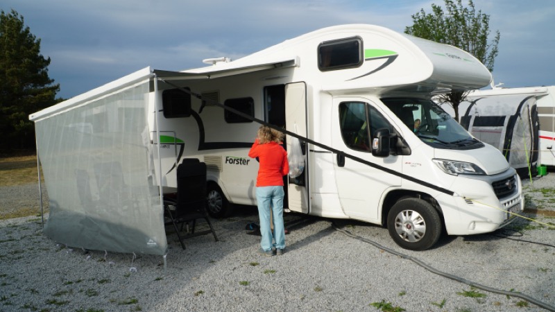 Nach dem Mittag sind wir Richtung Bärwalder See gefahren. Kurz nach dem Start bemerkte ich, dass mein Rucksack noch zu Hause stand, so sind wir kurzerhand noch einmal zurükgefahren. So nun hatten wir alles im WoMo und los ging die Reise. Ca. 16.30 Uhr sind wird dann am Campingplatz „Sternencamp“ am Bärwalder See angekommen. Nach einer kurzen Anmeldung an der Rezeption wollten wir üblich alles aufbauen. Diesmal gestaltete sich dies allerdings etwas schwierig, da der Boden komplett mit Steinen versehen und das Einschlagen der Heringe für die Markisse nicht funktioniert hat. Nun war guter Rat teuer, aber Nicole hatte eine gute Idee und wir befestigten das Seil am Fahrradgepäckträger und die andere Seite an einem Pfahl. Danach sind wir noch kurz zum See und anschließend haben wir den Abend mit einem Grillerschen ausklingen lassen.