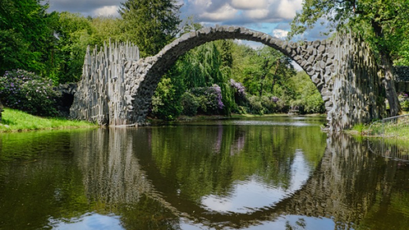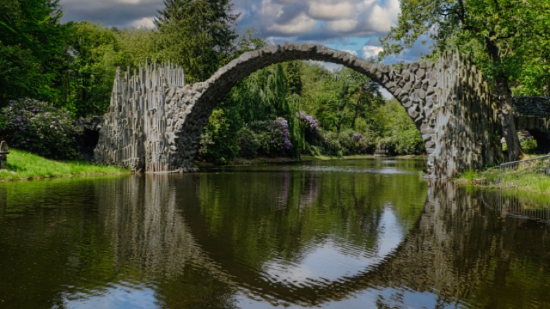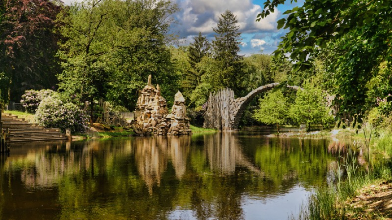 Die Heimreise stand nun an und wir packten unsere sieben Sachen. Auf dem Rückweg wollten wir uns aber noch ein besonders sehenswertes Denkmal in Sachsen anschauen, die Rakotzbrücke im Kromlau. Sie wird auch Teufelsbrücke genannt. Die Länge der Brücke beträgt 19,8 Meter. Erbaut wurde sie ursprünglich von 1866 bis 1875. Bis in den Frühling 2021 wurde sie umfassend renoviert. Die Rakotzbrücke ist aufgrund der mystischen Kulisse mit dem Spiegelbild im Rakotzsee eine der schönsten Sehenswürdigkeiten in dieser Region. Danach ging es zurück über die Autobahn mit einem längerem Stau nach Hause.