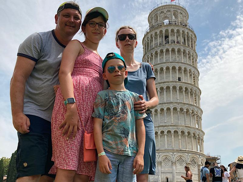 Nach den letzten Tagen mit ausgiebigem Baden im Meer und am Pool mussten wir uns heute Morgen von unserem hu Campingplatz verabschieden. Dafür sind wir 5.30 Uhr aufgestanden und ca. 8.30 Uhr in Richtung Pisa gestartet. Bevor wir jedoch nach Pisa gestartet sind, waren wir noch Einkaufen. Das ist zum Sonntag wirklich ein Schauspiel, man hat das Gefühl die Italiener haben in der Woche keine Zeit zum Einkaufen. Unser Zwischenstopp heute war Pisa. Wir haben unser WoMo auf einem Stellplatz: Parcheggio Camper – ca. 30 min vom Schiefen Turm von Pisa entfernt – geparkt. Wir hatten Glück und es waren auch noch genug Stellplätze frei. Den Stellplatz konnten wir für 6 Stunden mit Strom buchen (9 €). Danach ging es per Pedes bis zum „Schiefen Turm von Pisa“. Als wir da angekommen sind waren die Fotosüchtigen und Selbstdarsteller schon im Massen vor Ort und haben am und um den Turm gepost was das Zeug hält. Wir haben uns ebenfalls eingereiht und versucht ein paar schöne Schnappschüsse zu fotografieren. So haben wir den ganzen Nachmittag am „Schiefen Turm“, dem Dom und dem Baptisterium verbracht. Ein leckeres Eis war auch mit drin. Danach sind wir wieder zurück zum Parkplatz gelaufen und weiter nach Ligurien, genauer „Levanto“ gefahren. Hier hatten wir einen Campigplatz im AquaDolce-Camping gebucht. Als wir ankamen haben wir uns erst einmal an der Rezeption angemeldet und wurden nicht gerade mit offenen Armen empfangen. Die „nette“ Kollegin zeigte uns kurz zu Fuß wo unser Platz sei und sagte parken Sie erst einmal ein und dann kommen Sie hierher zurück. Das haben wir dann auch versucht, jedoch war der Stellplatz für unseren grossen Camper zu klein und ich habe sogar beim Einparken einen Ast am Dach unseres Alkoven gestriffen. Als ich den Boliden dann endlich zwischen 2 stark verästeten Bäumen geparkt hatte, sind wir zurück zur Rezeption und haben versucht auf Englisch unser Problem zu schildern. Die „nette“ Kollegin verwies uns auf Ihren Chef der aber erst morgen zu sprechen sei. Wir mussten dies dann leider so hinnehmen und die erste Nacht auf dem Platz verweilen. Wir haben alles soweit aufgebaut und anschliessend zu Abend gegessen. Danach ging es noch duschen und Gute Nacht…