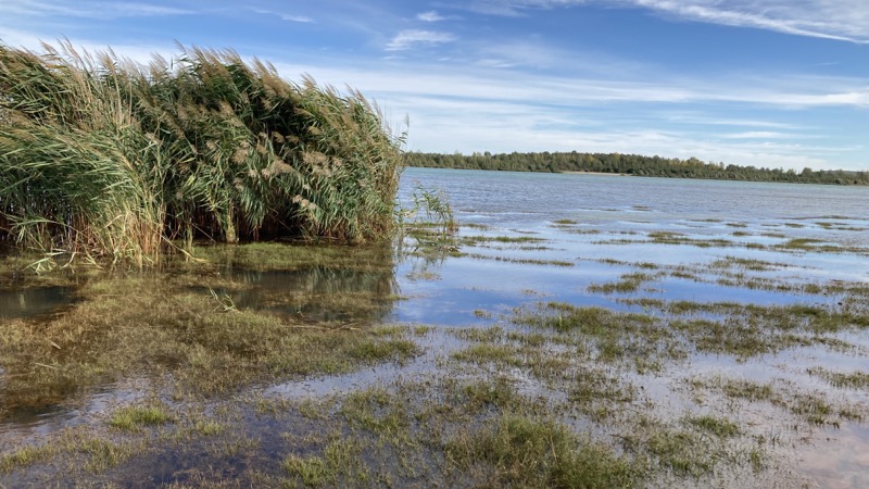 Der Radweg um den Störmthaler See ist sehr gut ausgebaut. Er ist sehr abwechslungsreich mit Waldgebieten, Strandabschnitten und tollen Ausblicken. Es gibt zwar einige kleinere Anstiege, aber die sind eigentlich gut zu schaffen. Entlang der Route gibt es neben den großen Stränden auch immer wieder kleine Badestellen, welche zu einem Bad im kristallklaren Wasser einladen, nur zu dieser Jahreszeit nicht.