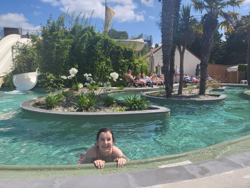 Baden, baden naja das Wetter ist sehr abwechslungsreich, die Temperaturen für einen Sommer eher unterirdisch, aber am Pool ist es auszuhalten. Zumindest die Kinder haben Spaß und baden was das Zeug hält. Einer der Pools ist mit einem Dach und da drin ist es auch warm, aber auch sehr laut. Einmal waren wir sogar am Meer und ich bin auch mal baden gewesen, etwas kühl aber für den Moment Ok. Am Meer haben wir eine schönere Creperie „Glacier – la Tourelle“ gefunden, hier schmecken die Crêpes besonders gut – handgemacht und mit viel Liebe zubereitet. Sonst sind unsere Tage eher entspannt, morgens frühstücken, dann kurz Hausarbeit anschließend Baden, Tischtennis spielen, Basketball… Die Kids waren auch schon im Kletterpark der sehr liebevoll integriert ist….